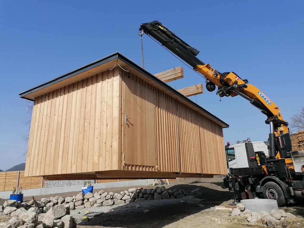 - Kompakte, selbst entwickelte Holzmassivbauweise